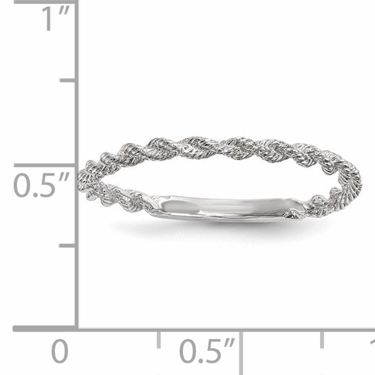 Este elegante anillo de cuerda torcida pulida en oro de 14k, con baño de rodio, ofrece un diseño sofisticado y moderno. Su textura torcida y su acabado pulido reflejan la luz de manera brillante, haciendo de este anillo una pieza destacada. La capa de rodio mejora su durabilidad y brillo.