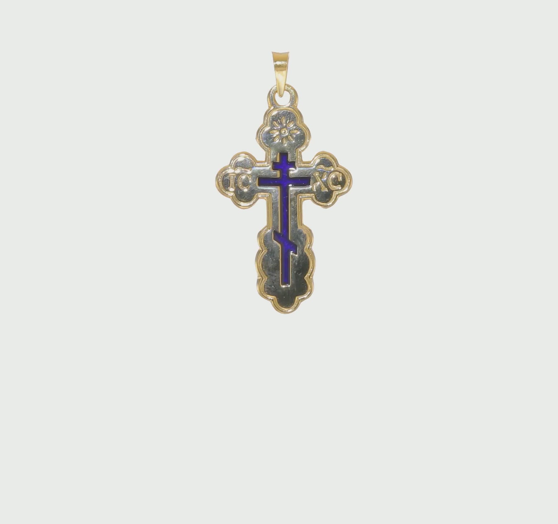 Colgante de Cruz Ortodoxa del Este con Esmalte Azul en Oro Amarillo de 14K