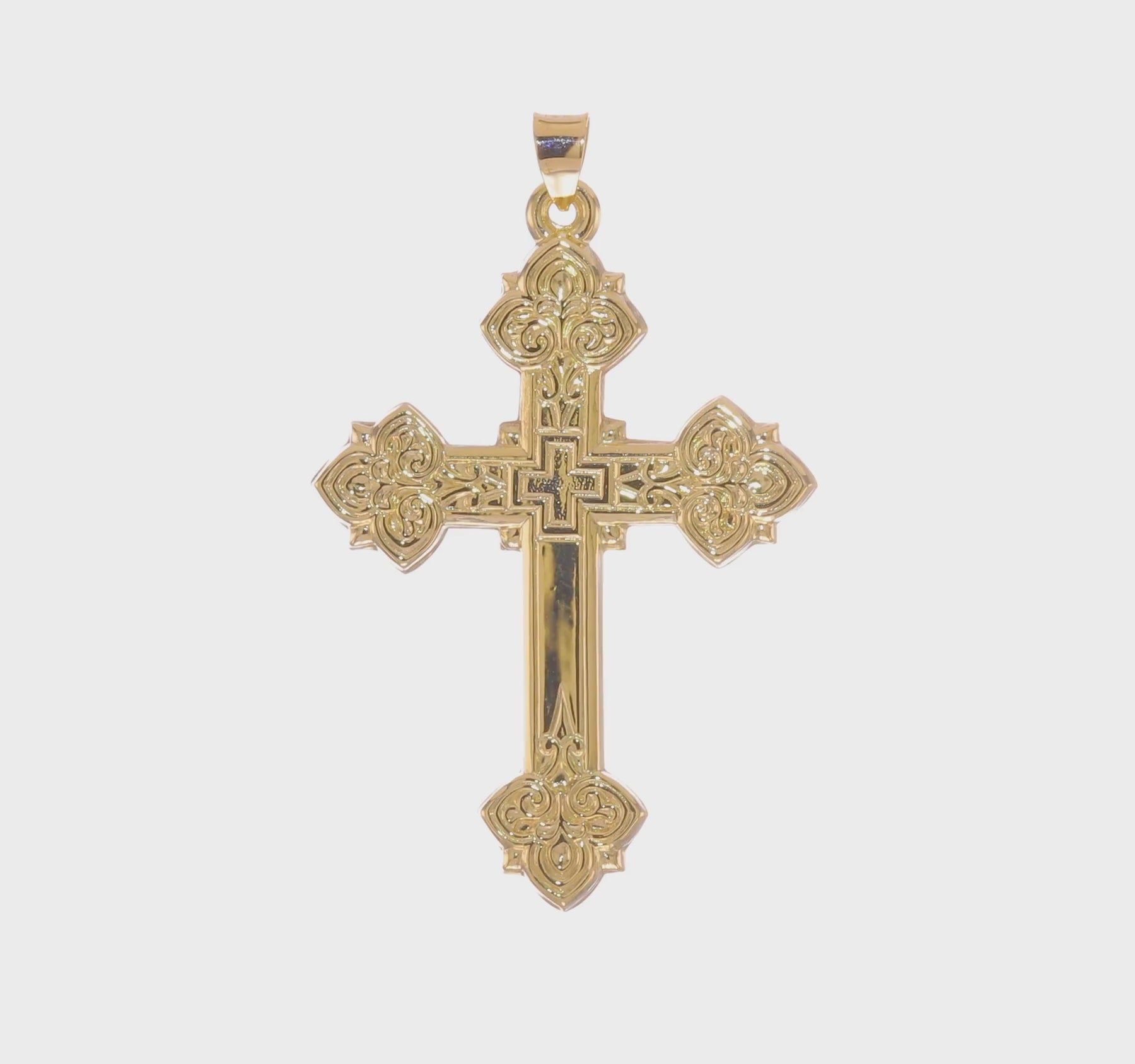 Colgante de Cruz Fleur de Lis Hueca Elegante en Oro Amarillo de 14k Pulido