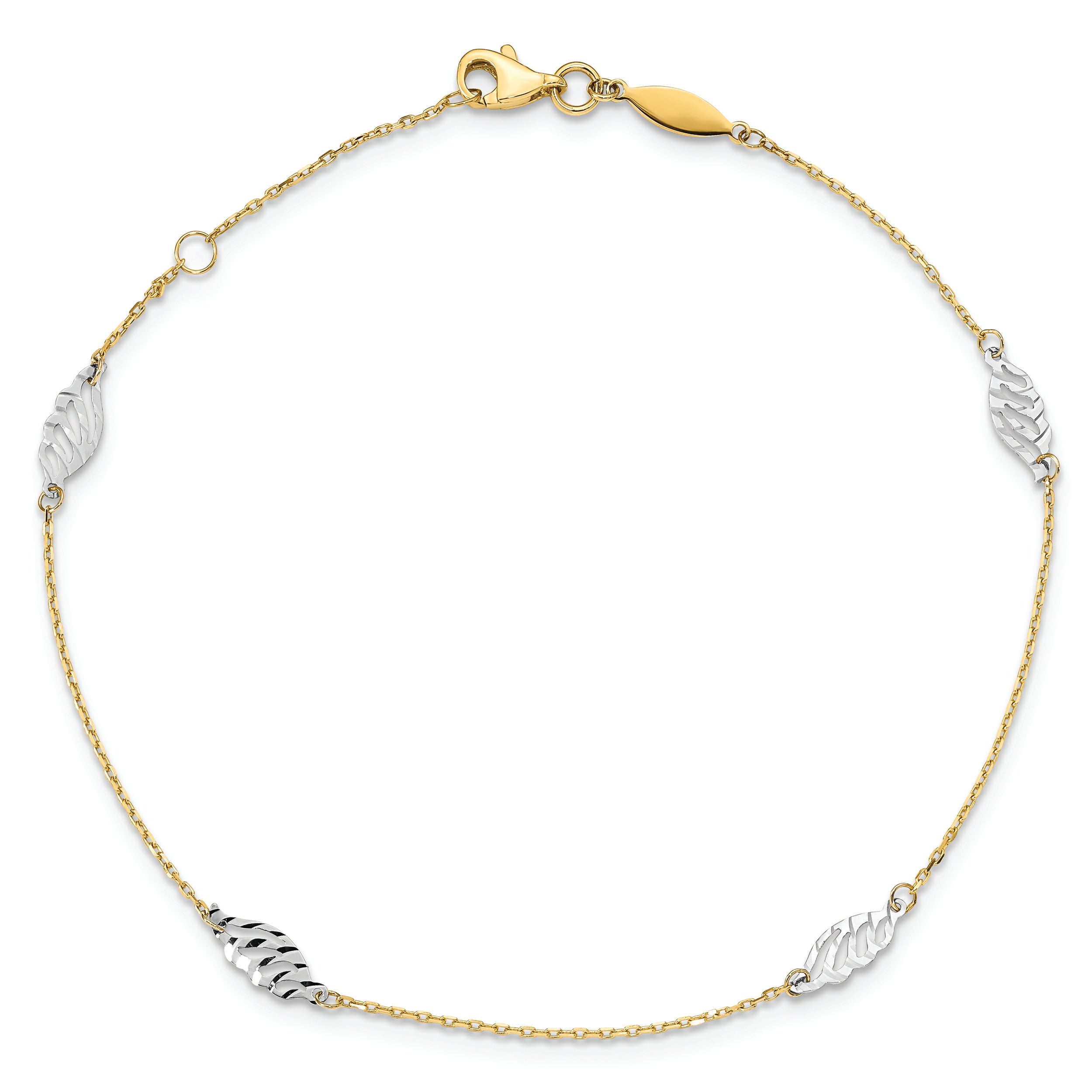 Tobillera de Oro Blanco de 14K con Mariposa Esmaltada Azul de 10 Pulgadas