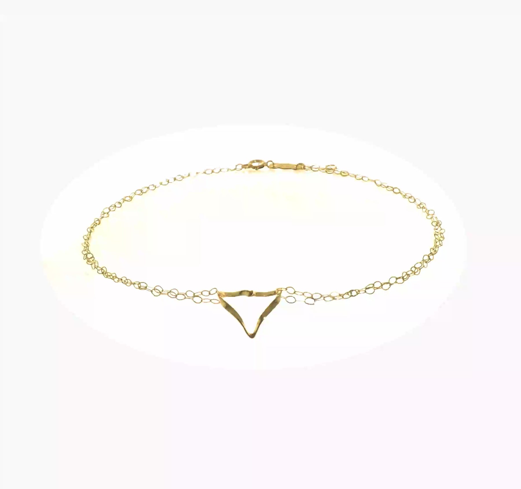 Tobillera de Oro Amarillo 14K, Doble Cadena con Corazón, 9 Pulgadas + 1 Pulgada de Extensión