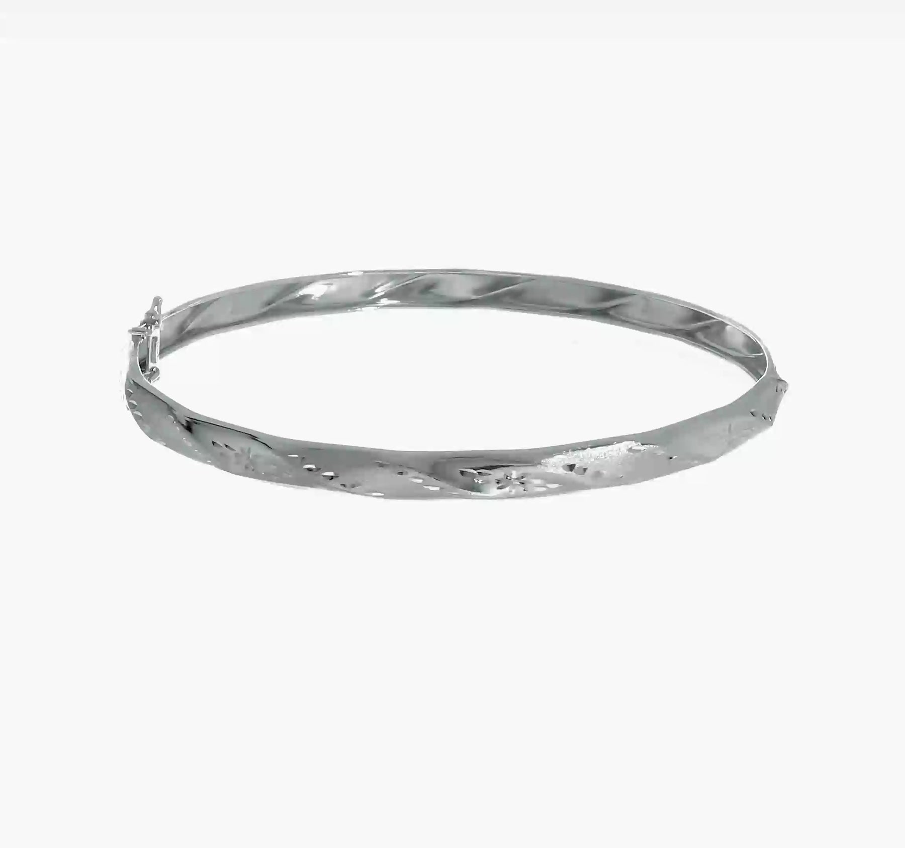 14k White Gold Flexible Bangle Bracelet with Satin Finish and Diamond Cut