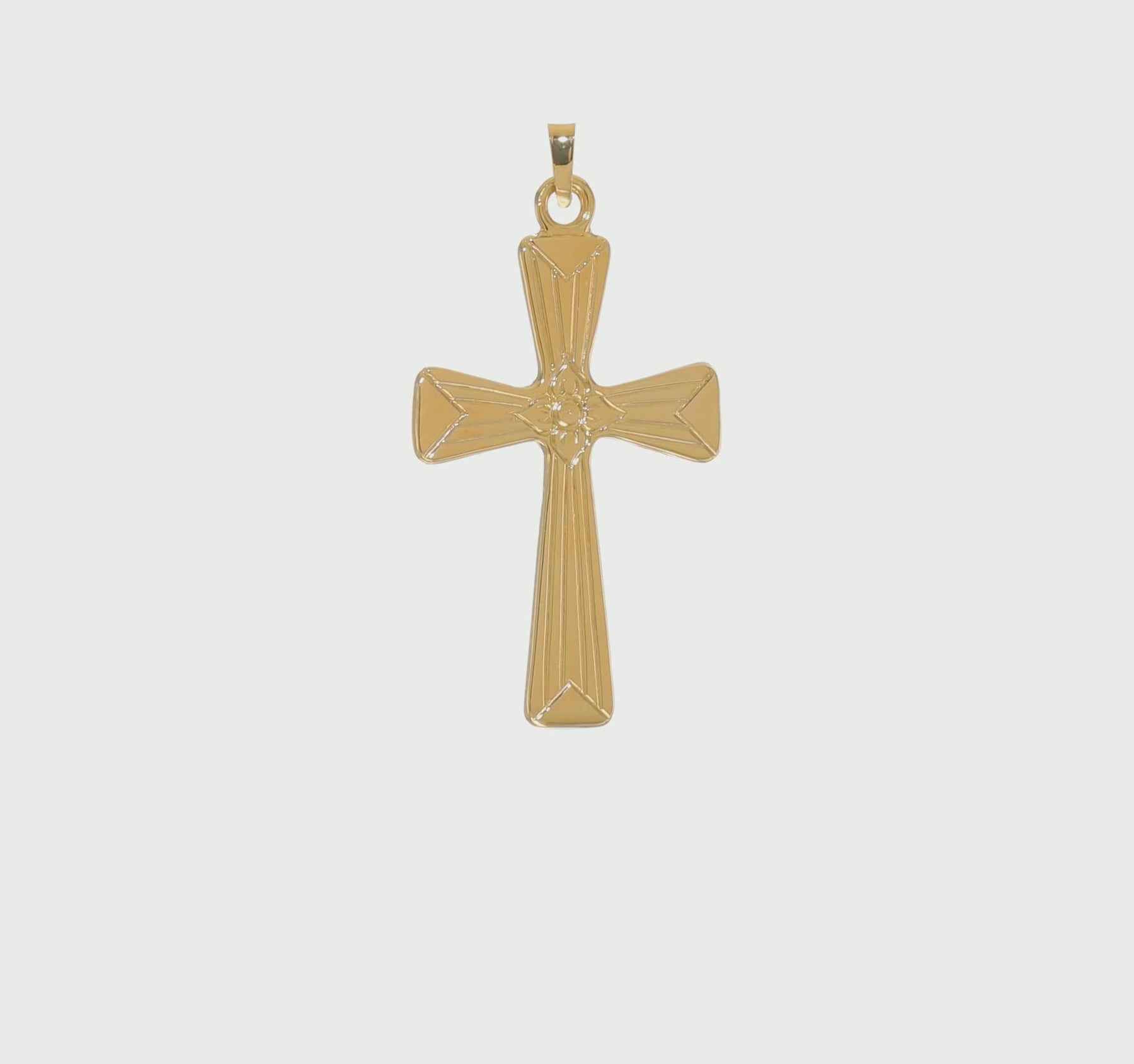 Solid Cross Pendant with Center Flower in Polished 14k Gold
